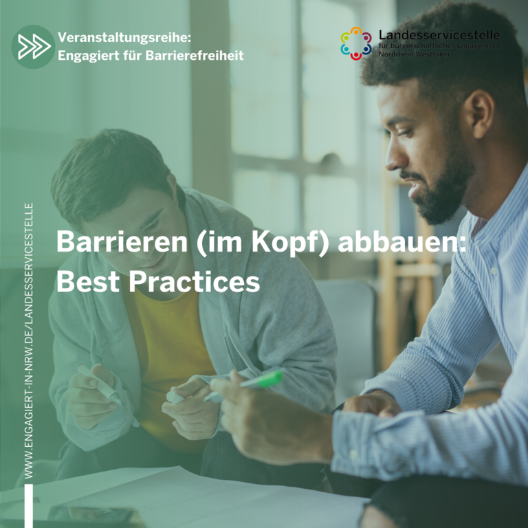 Was bedeutet Barrierefreiheit, welche Lebensbereiche berührt sie und welche Bedürfnisse haben Menschen mit Beeinträchtigungen? Welche Rolle spielt das bürgerschaftliche Engagement dabei und was können wir als Zivilgesellschaft tun, um Barrieren abzubauen? In dieser Online-Themenreihe geben wir relevante Informationen, konkrete Handlungsansätze sowie praktische und motivierende Umsetzungstipps für euer Engagement.